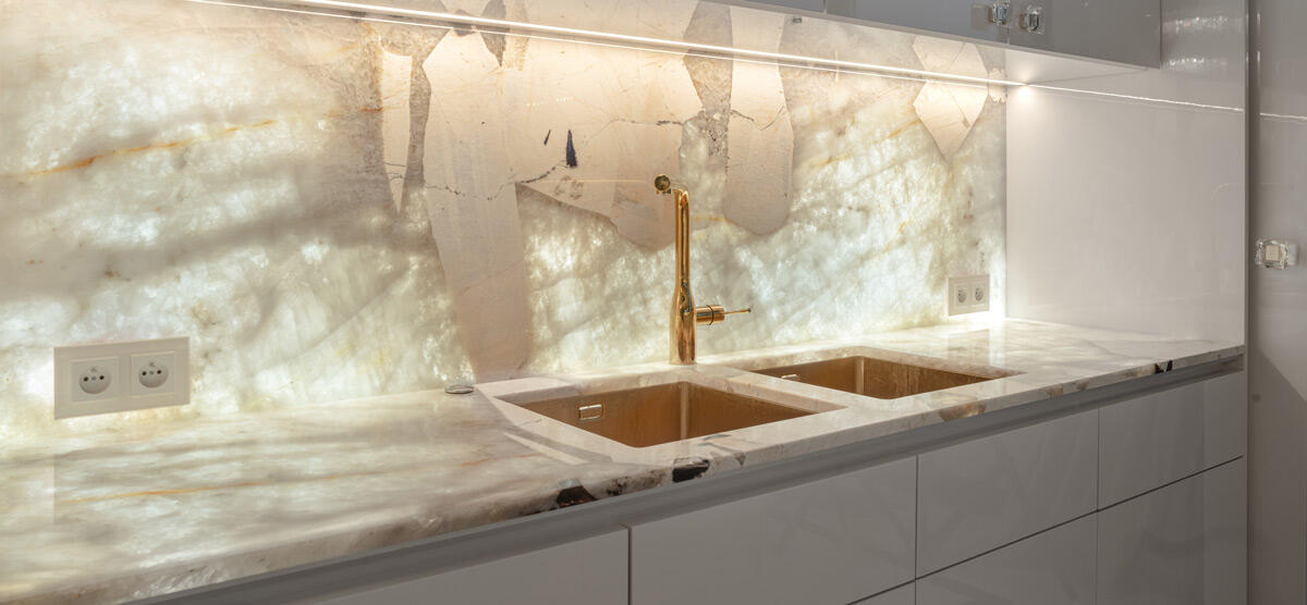 Kamień nieustannie pojawia się w projektach wykończenia domów i mieszkań. Jest to ponadczasowy materiał, który sprawdza się w różnych pomieszczeniach. Coraz pewniej plasuje się w towarzystwie światła. Po raz pierwszy podświetlono onyks, później zaczęto próbować z innymi kamieniami. Obecnie zobaczymy świecący marmur, alabaster i kwarcyt.