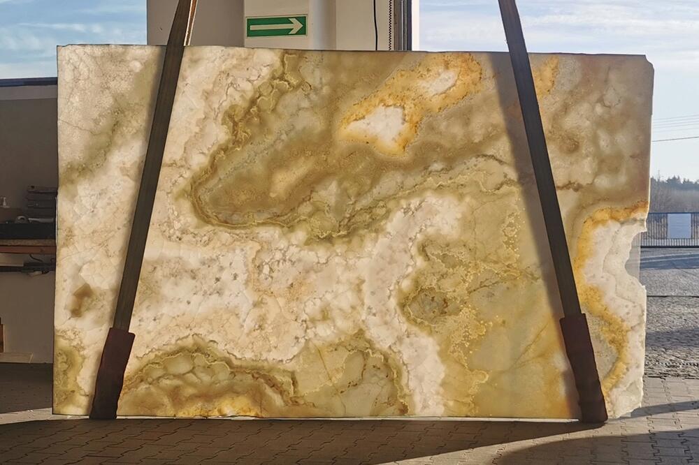 Dodatkowo, podświetlony Onyx może pełnić praktyczną rolę w aranżacji wnętrza. Stosowany jako element dekoracyjny czy oświetleniowy, nadaje się idealnie do stworzenia unikalnych, niestandardowych projektów. Blaty kuchenne, ściany, podłogi czy elementy małej architektury - zastosowań podświetlanego Onyxu jest wiele, a efekt zawsze zachwyca.
