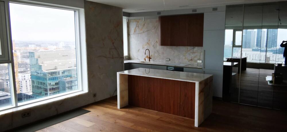 Z nieukrywaną dumą przedstawiamy jedną z naszych ostatnich realizacji - apartament w sercu Warszawy, przy ulicy Grzybowskiej 49, w prestiżowym budynku Unique Tower. Za koncepcję tego wyjątkowego projektu odpowiada znana architektka Agnieszka Ludwinowska, której wizja połączenia nowoczesności z elegancją naturalnych kamieni znalazła odzwierciedlenie w każdym szczególe wykonania