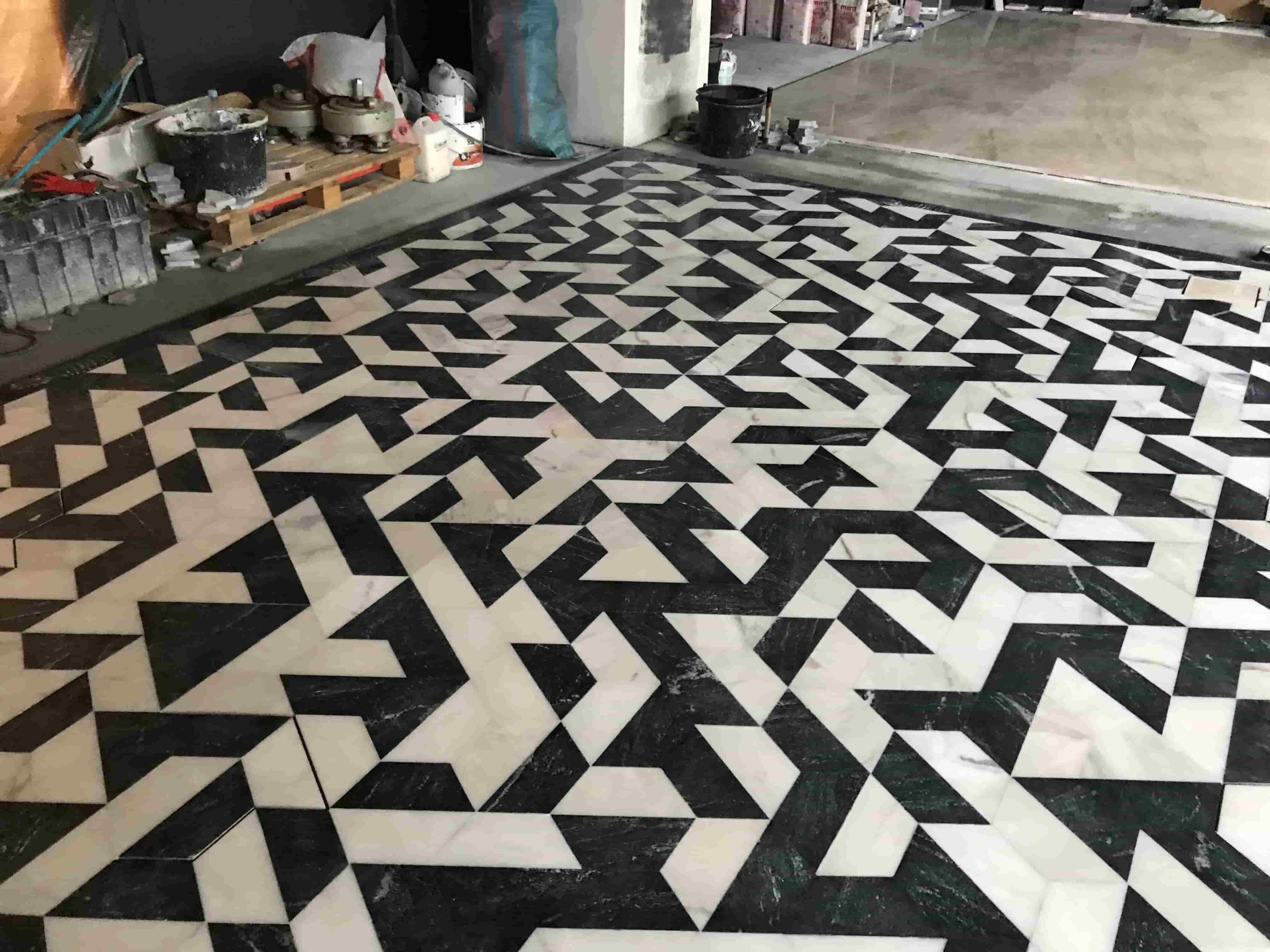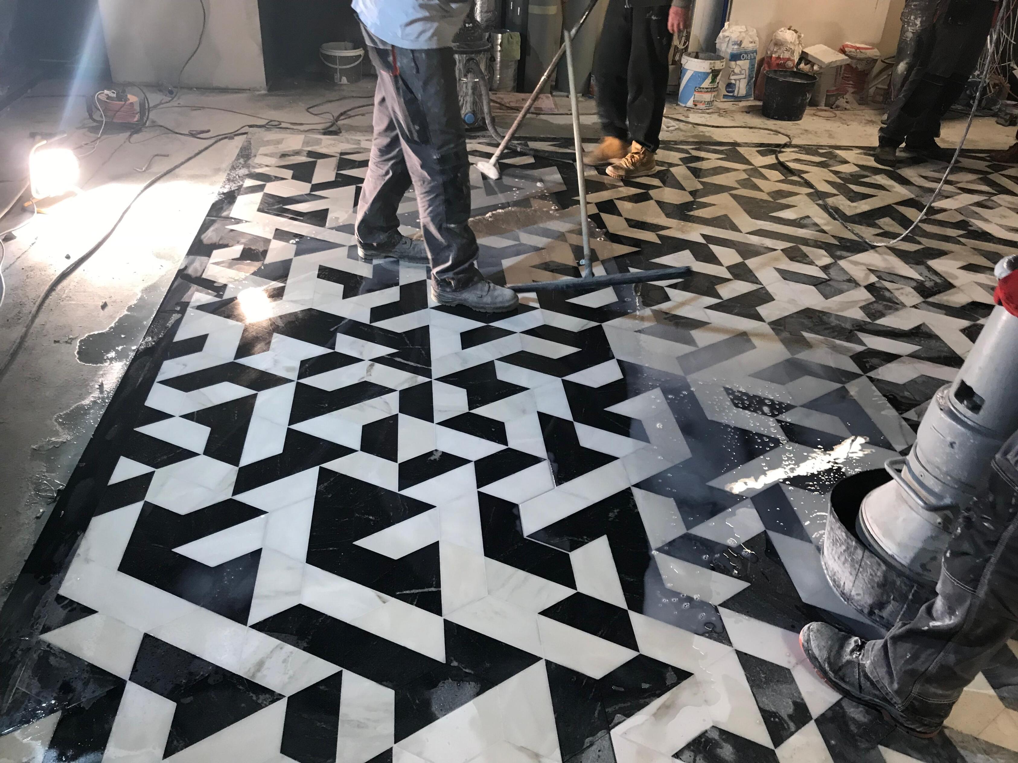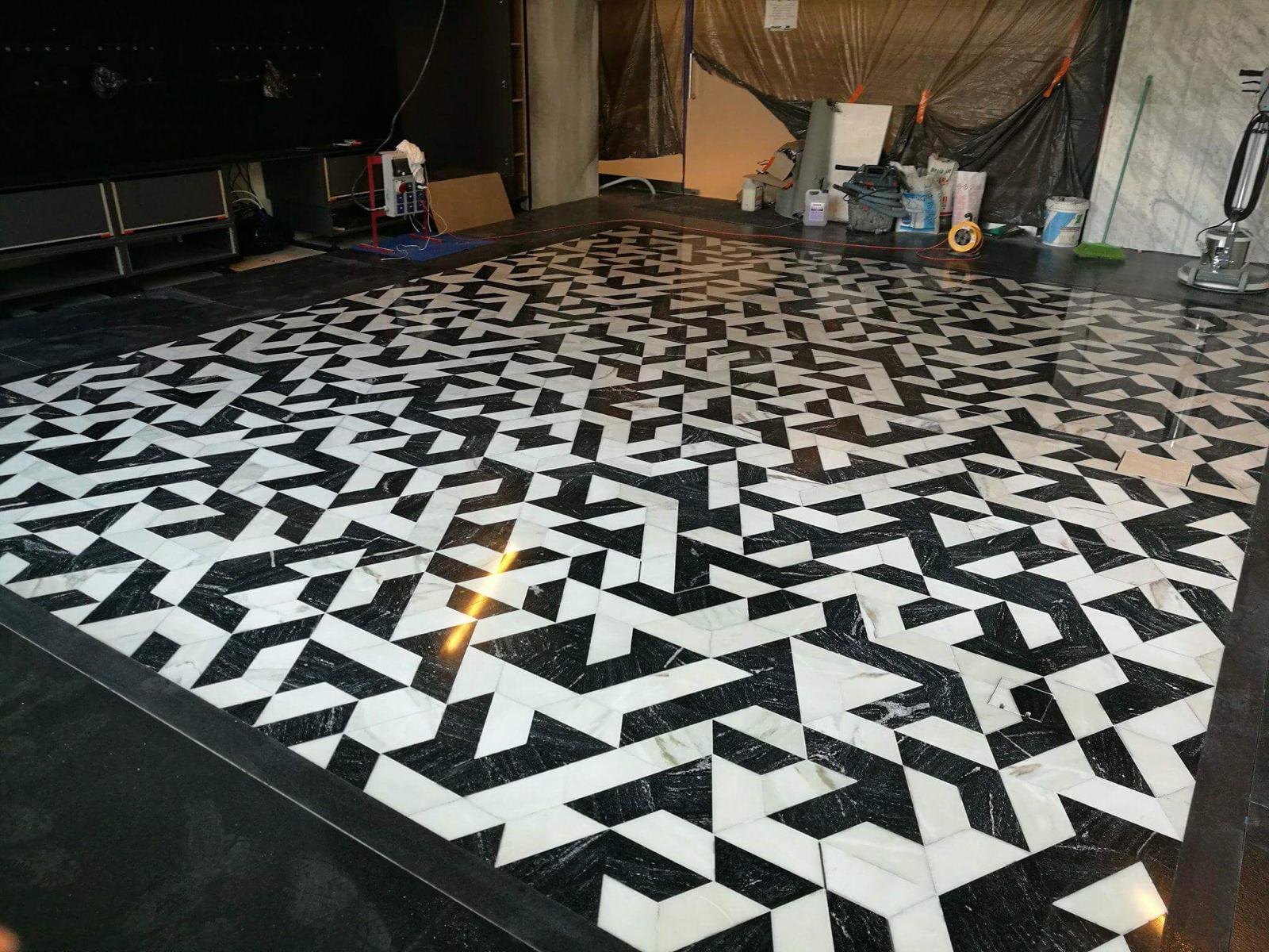 Miniatury oraz wybrane fragmenty pozwalają ocenić, jak kamień pracuje w zestawieniu kolorów, jak zachowują się połączenia oraz czy zaprojektowany rysunek nie traci lekkości po przeniesieniu z projektu na rzeczywistą posadzkę. Na tym etapie możliwe są jeszcze korekty, które mają kluczowe znaczenie dla końcowego efektu wizualnego.