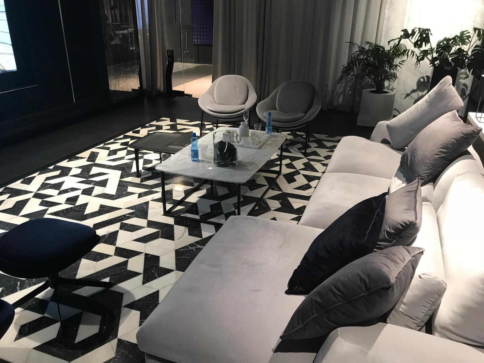Rozeta nie musi dziś oznaczać ornamentu w klasycznym, pałacowym rozumieniu. Coraz częściej przybiera nowoczesną, graficzną formę, opartą na rytmie, geometrii i kontraście materiałów. Zamiast miękkich linii i roślinnych motywów pojawiają się dynamiczne układy kątów, powtarzalne moduły i wyraźna gra światła z kamieniem. Taka rozeta działa jak kamienny dywan – porządkuje przestrzeń, nadaje jej charakter i staje się integralną częścią nowoczesnej architektury wnętrza, a nie tylko dekoracyjnym akcentem.