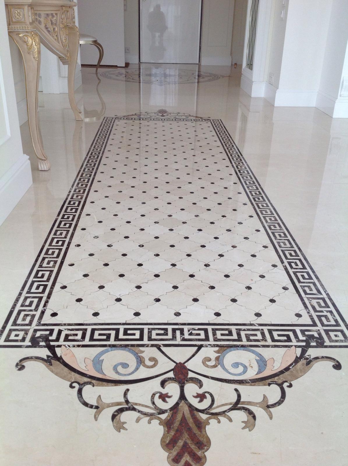 Najczęściej stosowane są marmury, cenione za swoją elegancję, naturalny rysunek i ponadczasowy charakter. Materiał dobierany jest tak, aby harmonijnie współgrał z pozostałymi elementami posadzki oraz całym wnętrzem.